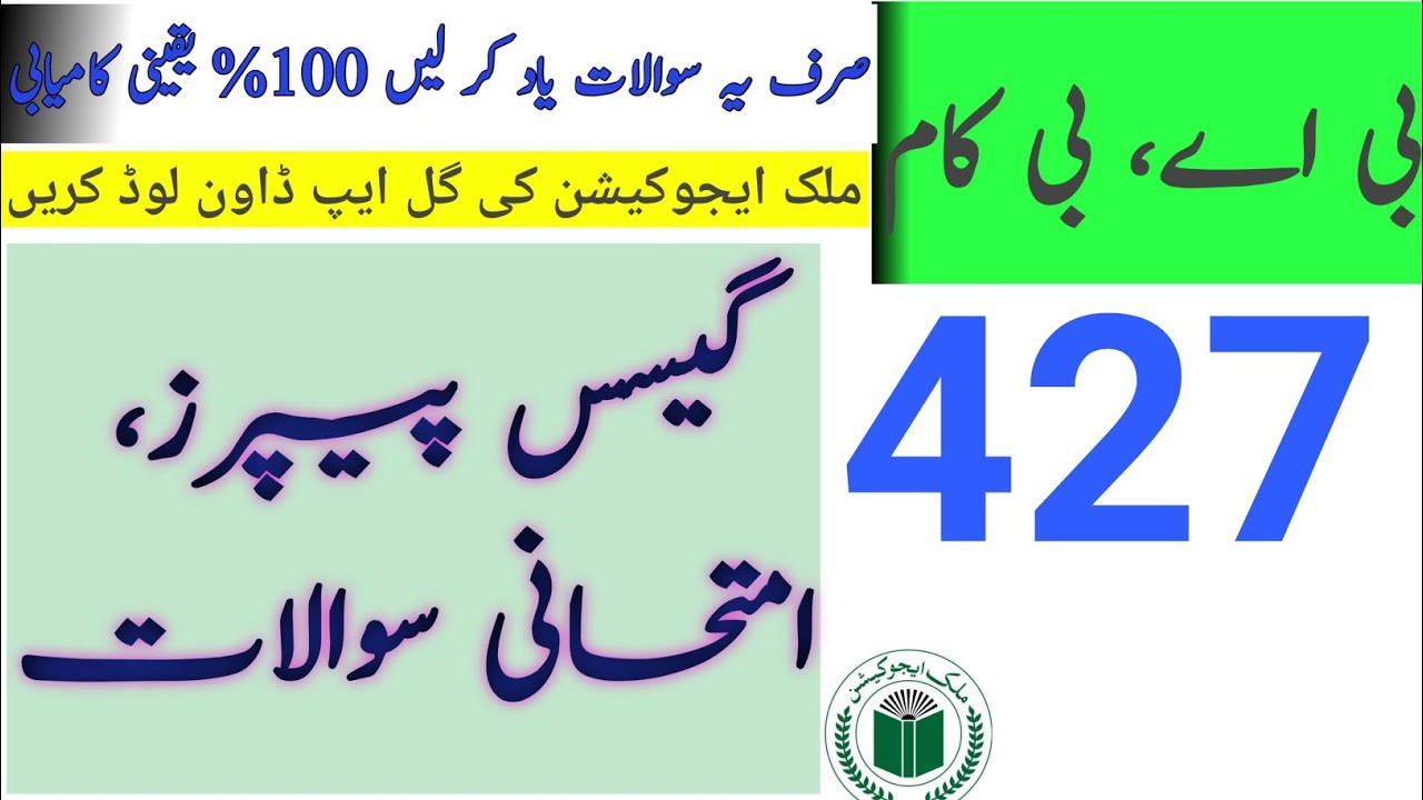 Aiou Ba B Com Code 427 Aiou Guess Paper Aiou Past Paper Aiou Old Paper Aiou Importance Q Youtube